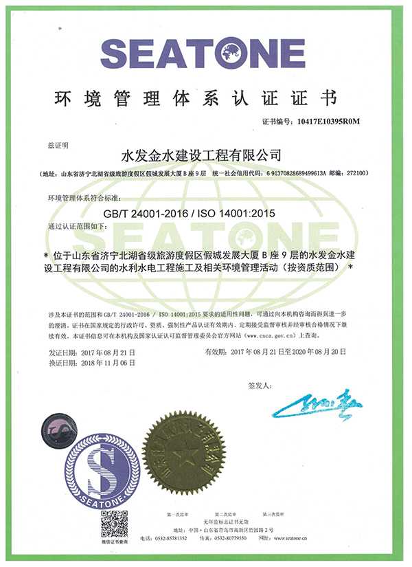 水發金水建設工程有限公司 三體證書-環境