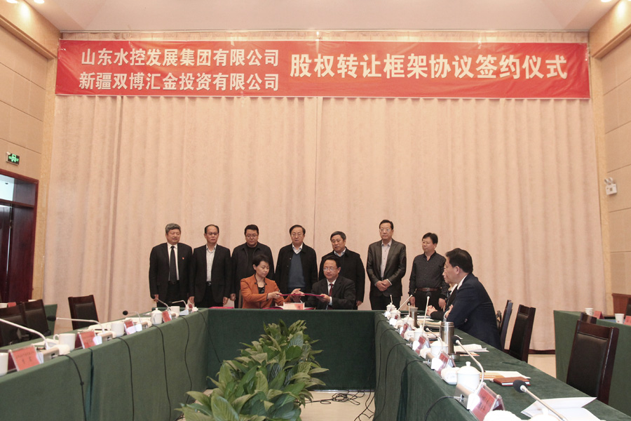 2月28日,山東水控發(fā)展集團(tuán)有限公司(以下簡稱:水控集團(tuán))與新疆雙博匯金投資有限公司(以下簡稱:雙博匯金公司)在雙河市舉行股權(quán)轉(zhuǎn)讓框架協(xié)議簽約儀式。新疆生產(chǎn)建設(shè)兵團(tuán)第五師、雙河市黨委常委、副師長王作敏,副市長葉松出席簽約儀式,新疆生產(chǎn)建設(shè)兵團(tuán)第五師、雙河市國資委主任李實(shí)主持簽約儀式。