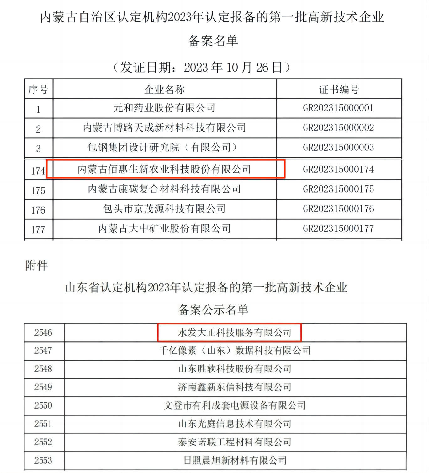 近日,國家高新技術(shù)企業(yè)認(rèn)定管理工作網(wǎng)公示了擬認(rèn)定高新技術(shù)企業(yè)名單,水發(fā)農(nóng)業(yè)集團(tuán)2家權(quán)屬公司內(nèi)蒙古佰惠生新農(nóng)業(yè)科技股份有限公司和水發(fā)大正科技服務(wù)有限公司,被認(rèn)定為國家高新技術(shù)企業(yè)。