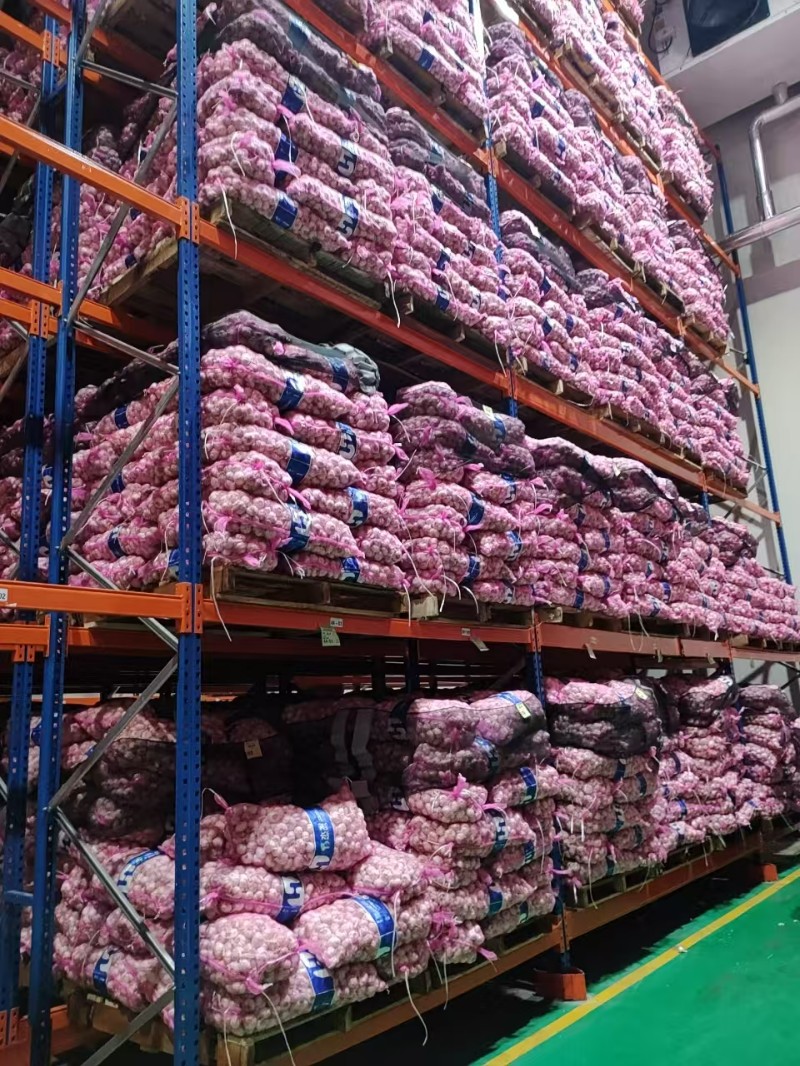 金鄉縣和福隆水發農業發展有限公司通過全鏈條技術應用實現大蒜長時保鮮。在源頭精選金鄉紫皮蒜、杞縣白皮蒜等耐儲品種,初加工環節嚴格分揀剔除瑕疵蒜,避免機械損傷影響保鮮。核心采用現代冷鏈技術,構建從倉儲到運輸的全程溫控體系,通過冷鏈倉儲和運輸設備精確控制適宜溫度,確保大蒜在倉庫、集裝箱及各運輸環節均處于穩定保鮮環境,實現從中國田間到東南亞、歐洲等全球市場的冷鏈無縫銜接,大幅延長保鮮周期,保障大蒜到達世界餐桌時仍保持良好新鮮度。